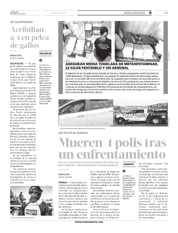 gallos. murieron en cia, mientras que, en una segunda acción, catearon un inmueble de la colonia Tierra Blanca, en
