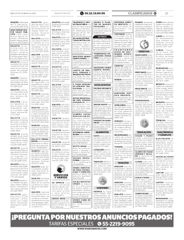 MARTES 30 DE ABRIL DE 2024 CIUDAD DE MÉXICO 55.22.19.90.95 CLASIFICADOS B! 21
