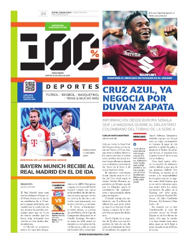 24 EDITOR: CARLOS HORTA / DISEÑO GRÁFICO: ● Duvan Zapata juega en el