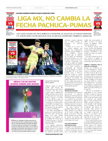 ● México y Estados Unidos anunciaron Concachampions, y dos días a los Gallos a las 19:00. Por su parte, Pachuca con