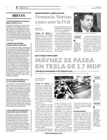 principio de seguridad jurídica, porque Samuel García. primera Cybertruck a Méxi- 720 mil pesos, Máynez ha sido RECHAZO
