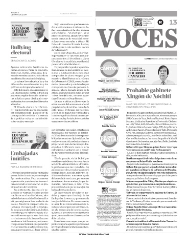 Embajadas do de sus representaciones diplomá- COORDINADOR EDITORIAL -A ella se le hizo engrudo por echar tantas mentiras a la