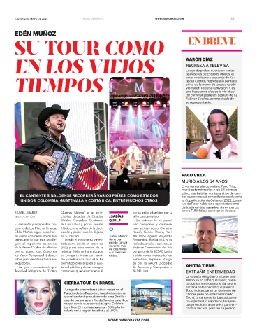 EL CANTANTE SINALOENSE RECORRERÁ VARIOS PAÍSES, COMO ESTADOS cer que comenzó a manifestarse durante