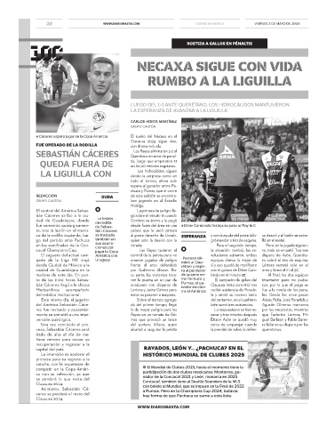 ceso, Sebastián Cáceres será alcanzó a rasguñar la pelota la prendió de volea, la defen- queretanos.