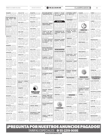 SÁBADO 4 DE MAYO DE 2024 CIUDAD DE MÉXICO 55.22.19.90.95 CLASIFICADOS B! 21