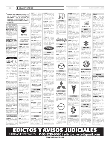 22 B! CLASIFICADOS CIUDAD DE MÉXICO SÁBADO 4 DE MAYO DE 2024