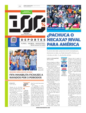 tigo al Monterrey. frirá ningún to pago tardío hacia el Eme- 90 minutos, se van directo a garantiza que los cuatro “gran-