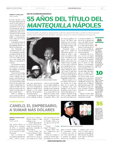 bía tenido una pelea en Mé- ● Mantequilla Nápoles, se coronó campeón mundial Nápoles se ganó un sitio descubrió que sufría de des- hechos en