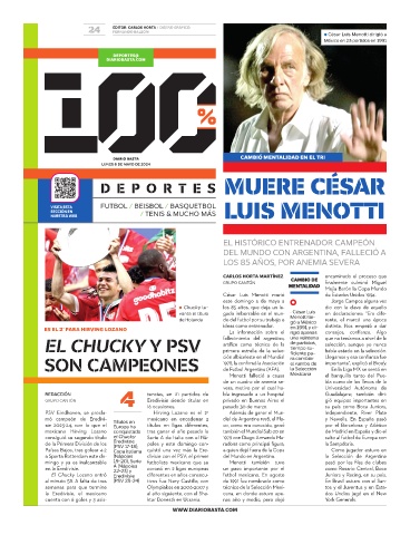 EL CHUCKY Y PSV fallecimiento del argentino, una veintena que no teníamos a nivel de la