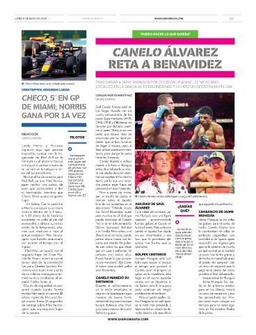 Checo Pérez acabó en quinto Norris con 83 guir el triunfo las dudas se ● Canelo Alvarez tumbo a Munguía y luego retó a Benavidez