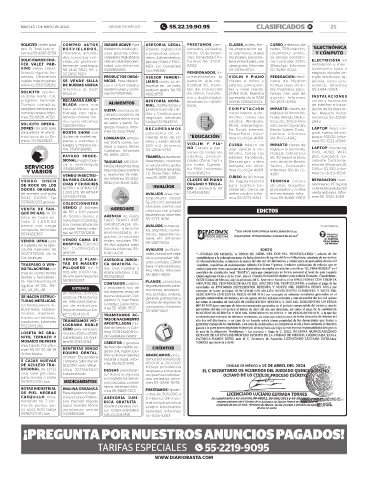 MARTES 7 DE MAYO DE 2024 CIUDAD DE MÉXICO 55.22.19.90.95 CLASIFICADOS B! 21