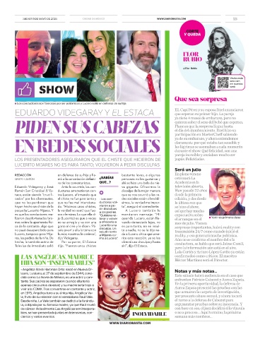 ca de la cantante, algo que gorra al cine y le dicen: ‘Pá- Lucerito una es para tanto, no se insul- sorpresas importantes, habrá reality con