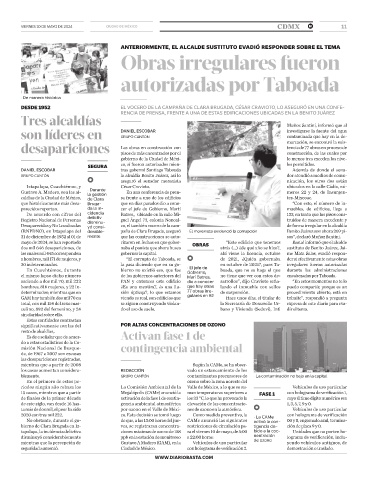 mayo de 2024, se han reportado rizaron en fechas en que gober- OBRAS “Este edificio que tenemos Basta! informó que el alcalde