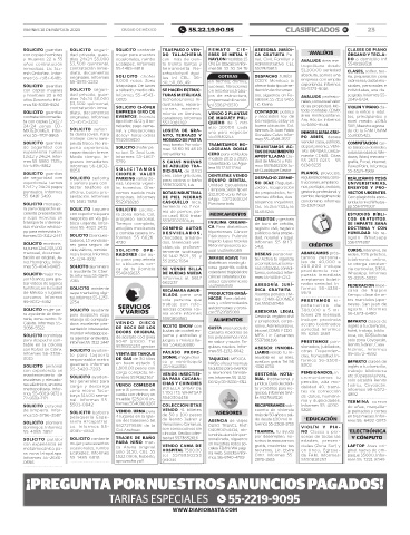 SOLICITO guardias SOLICITO seguri- SOLICITO cantante TRASPASO O VEN- R E M AT O C IE - ASESORIA JURÍDI- *AVALÚOS CLASES DE PIANO