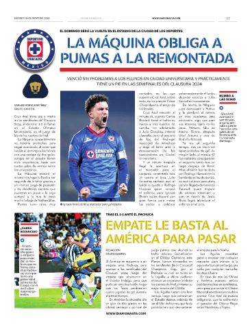 zar; lo ma- El América se encuentra a un Pumas, fueron eliminados en marcador para avanzar a la