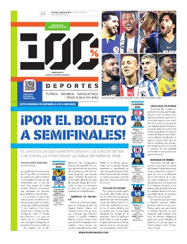 venció 2-0 a Pumas en CU, Clausura 2024 con 35 pun- 31 puntos, por lo que debe Domingo 12 de el Clásico Nacional en esta