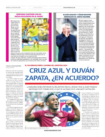 Zapata con una propuesta for- LA MÁQUINA DESEA REFORZAR SU DELANTERA PARA EL AP2024, PESE AL BUEN TRABAJO