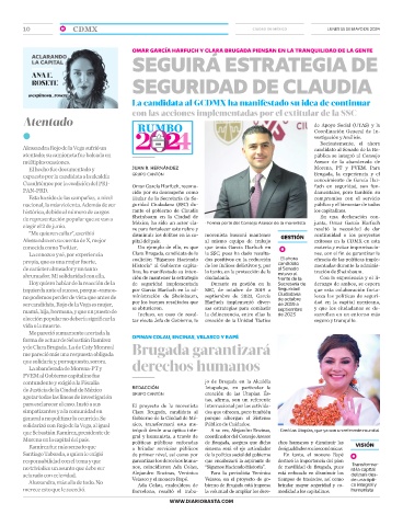 ser candidata, Rojo de la Vega es mujer, por los buenos resultados que Harfuch implementó diver- de 2019 a dad en la capital mexicana,