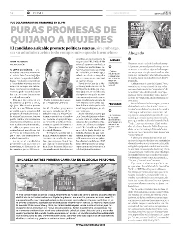 la Mujer Contrerense, Juntos trerense resultó en el cambio Luis Gerardo Quijano se le re- • El priísta se calco, que no vale la pena mencionarlo,