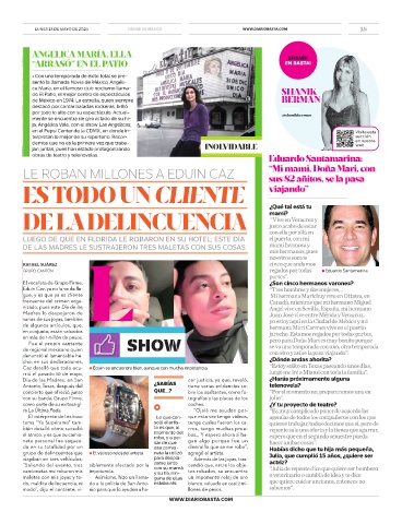 Caz detalló que todo ocu- ● Eduin se encuentra bien, aunque con mucha impotencia “Estoy solito en Texas paseando unos días,