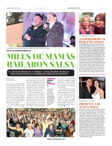 por el Día de las Madres, el Al- al ritmo de bolero Rodrigo de se, el público se les entregó