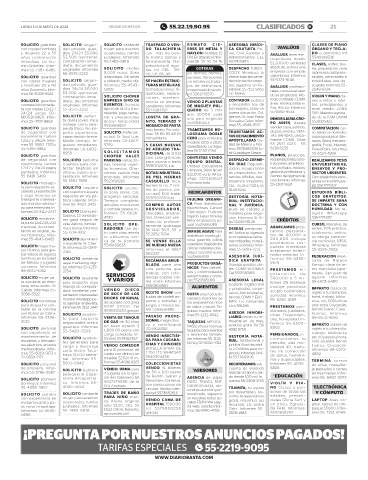 LUNES 13 DE MAYO DE 2024 CIUDAD DE MÉXICO 55.22.19.90.95 CLASIFICADOS B! 21