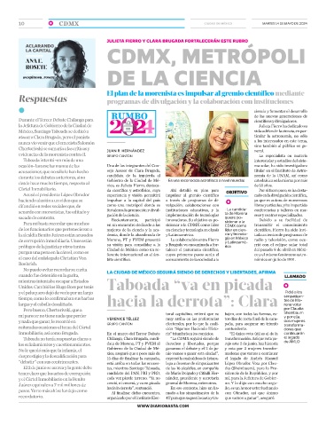 Taboada no tenía respuestas claras a Chilango, Clara Brugada, candi- “La CDMX seguirá siendo de transformación. Así que vota pa- el legado