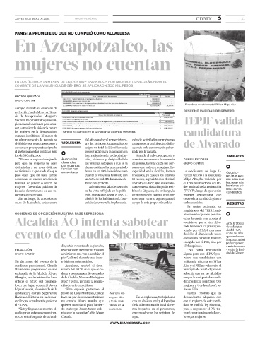 olvidó de este sector, pues pese a VIOLENCIA tre del 2024, en Azcapotzalco, se para prevenir la violencia o delin- de Alvarado