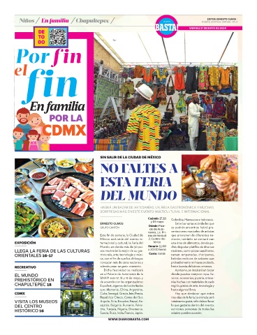 Mundo, en donde más de 50 paí- Horario: 11:00 drás degustar platillos de diversas