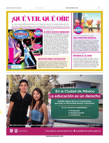 táculo para toda la familia. Actualmen- 17 de mayo, al WhatsApp 55 2851 6118;
