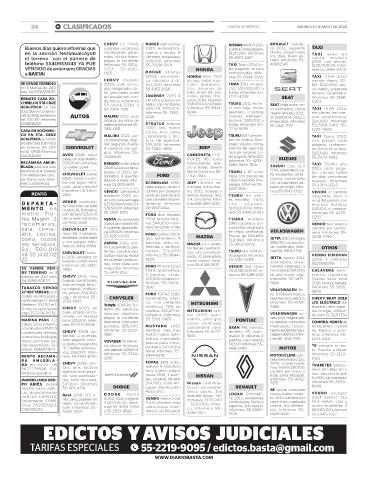 24 B! CLASIFICADOS CIUDAD DE MÉXICO VIERNES 17 DE MAYO DE 2024