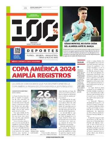 COPA AMÉRICA 2024 •Las selec- campo de juego y 15 en la