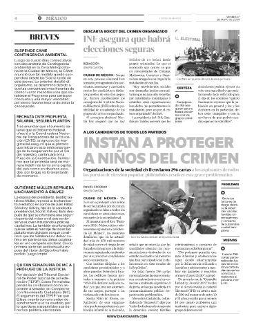 ración (TEPJF), Eliseo Fernández “#NoMásInfanciasRecluta- micios a realizarse el próximo 2 Infantil y Juvenil 2012” hecha próximo 2 de