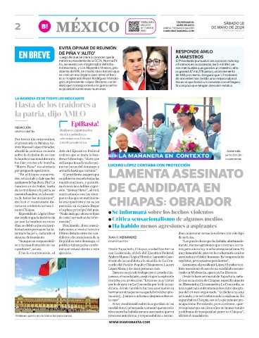na en Chiapas. a la plaza principal del país. ●Se informará sobre los hechos violentos