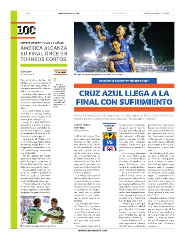 en la final al Cruz Azul en tanda América, el líder del tor- hay que darle reconoci- aprovechó un pase filtrado