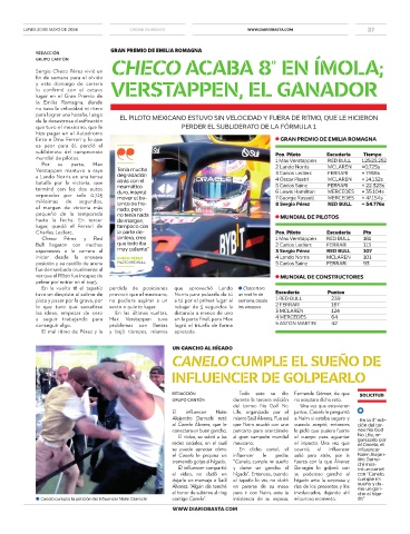 Sergio Checo Pérez vivió un CHECO ACABA 8° EN ÍMOLA;