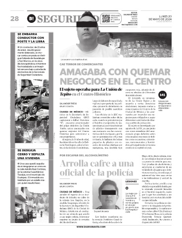 CERRO Y SEPULTA POR ESCAPAR DEL ALCOHOLÍMETRO Mayo, de la citada colonia, don-