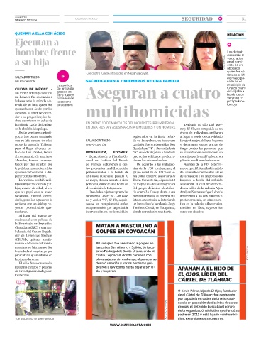 hija, menor de edad, al ver el municipio de Ixtapaluca. del grupo delictivo identifica- do en calles de la colonia Agua