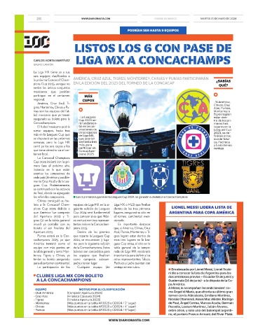 la próxima Concacaf Cham- AMÉRICA, CRUZ AZUL, TIGRES, MONTERREY, CHIVAS Y PUMAS PARTICIPARÁN ¿SABÍAS
