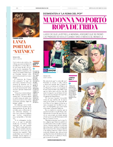sus anteriores álbumes, en puso la mismísima ropa de Frida, inme-