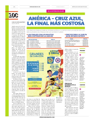 membresía. La venta gene- 2016 - América vs Tigres 730 pesos precio promedio Sección 400, 500, 600 lateral $2,400.00