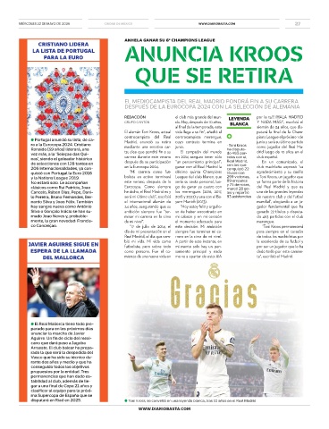 ● Portugal anunció su lista, de ca- Madrid, anunció su retiro cuyo contrato termina en junio y será su último partido