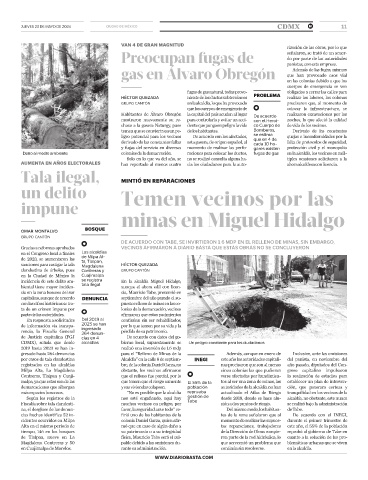 •Daño al medio ambiente colonias de la demarcación. raciones para colocar los ductos, fugas de gas en la alcaldía, los vecinos en múl-