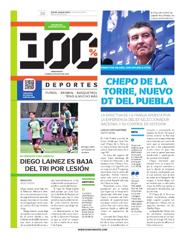 DIEGO LAINEZ ES BAJA la Selección Mexicana y de la Torre es siempre tuvo un sí para lle-