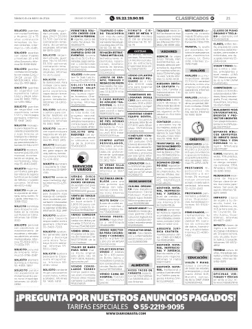 SÁBADO 25 DE MAYO DE 2024 CIUDAD DE MÉXICO 55.22.19.90.95 CLASIFICADOS B! 21