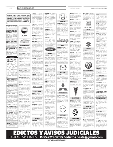 22 B! CLASIFICADOS CIUDAD DE MÉXICO SÁBADO 25 DE MAYO DE 2024