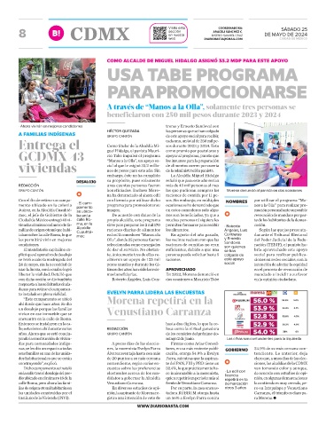 nas, se les dio un espacio a todas nes, la morenista Evelyn Parra tores, en su más reciente publi- GOBIERNO 34.9% de su más cercana con-