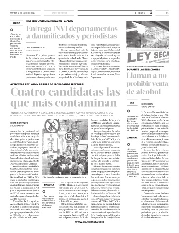 Haciendo Historia, reportó propaganda vial son Leticia Va- neración de 25 mil toneladas de con la ley seca. Lo que sí está