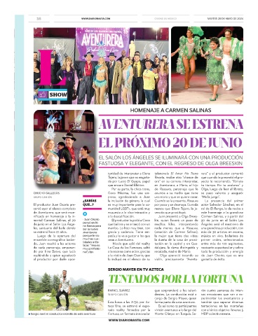 se estrenó hace 27 años. Aventurera gracia y cadencia. Tiene em- (creación de Carmen Salinas), más de 30 artistas en escena,