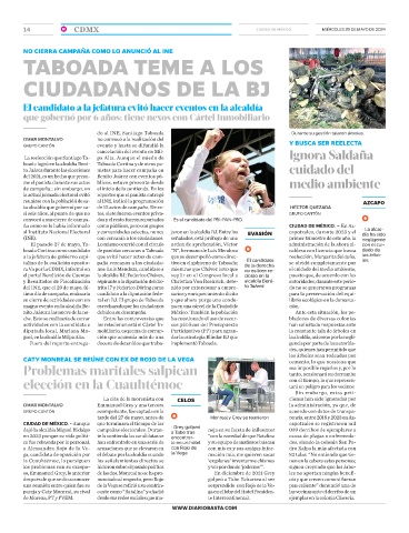 ra Va por la CDMX, informó en nos: Luis Mendoza, candidato a mientras que Chávez tuvo que no es bien re- el cuidado del medio ambiente,